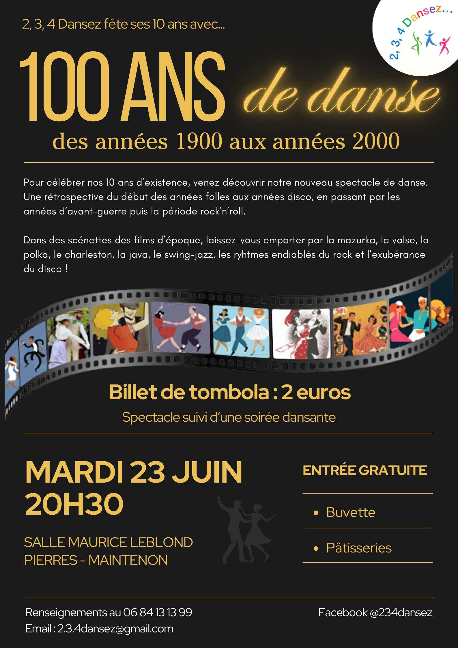 Renseignements au 06 84 13 13 99 ou par mail à 2.3.4dansez@gmail.com