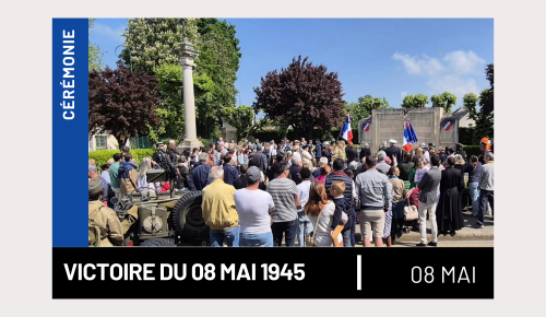 La municipalité vous invite à assister à la cérémonie commémorative du 8 mai, en hommage aux combattants et aux victimes de la Seconde Guerre mondiale.
