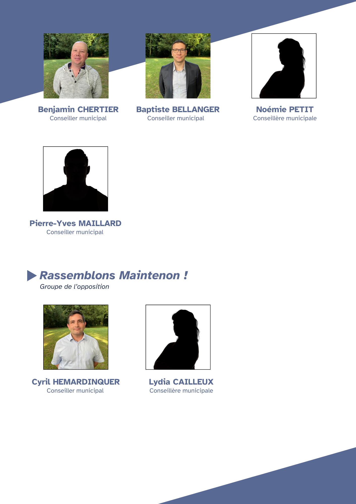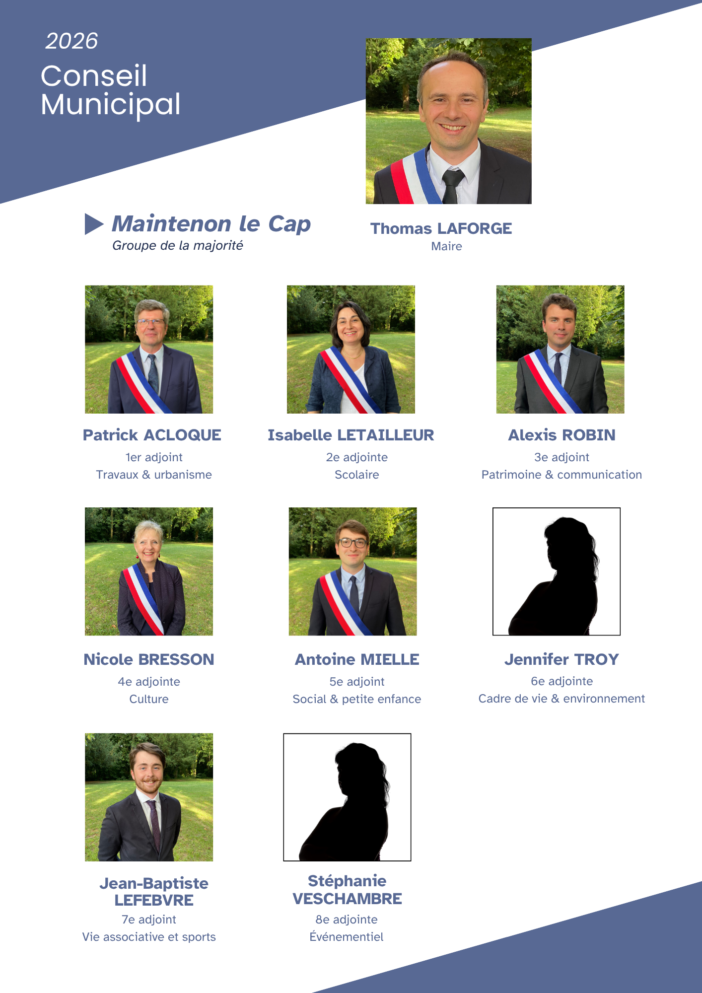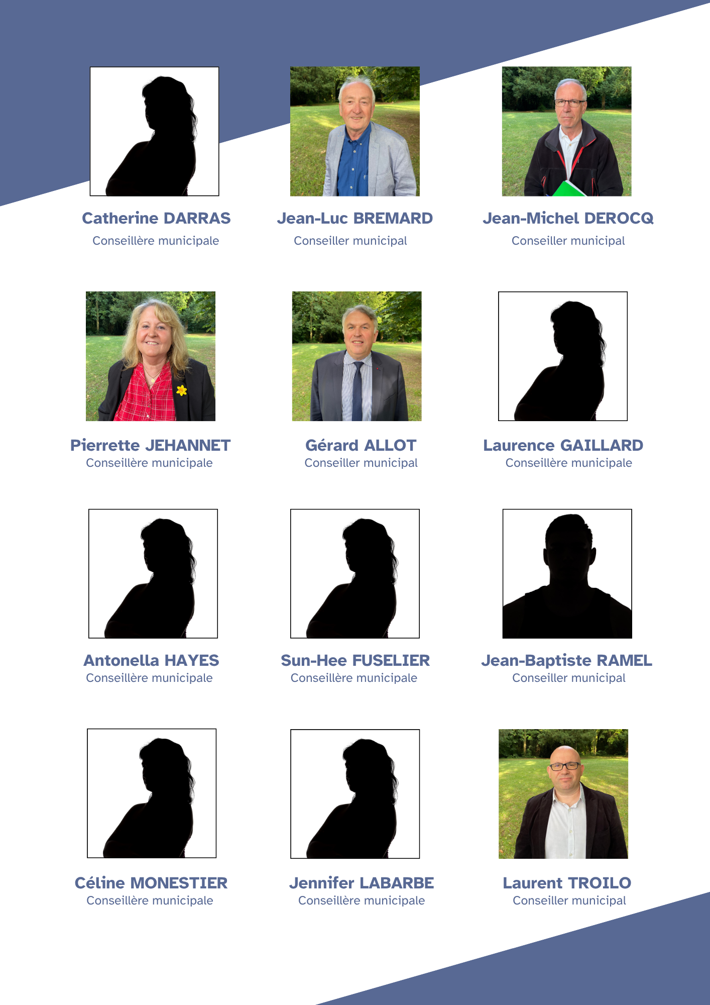 Mme TROY Jennifer, Mme LETAILLEUR Isabelle, Mme BRESSON Nicole, Mme JEHANNET Pierrette, M. ALLOT Gérard, M. BELLANGER Baptiste, M. RAMEL Jean-Baptiste, M. HEMARDINQUER Cyril