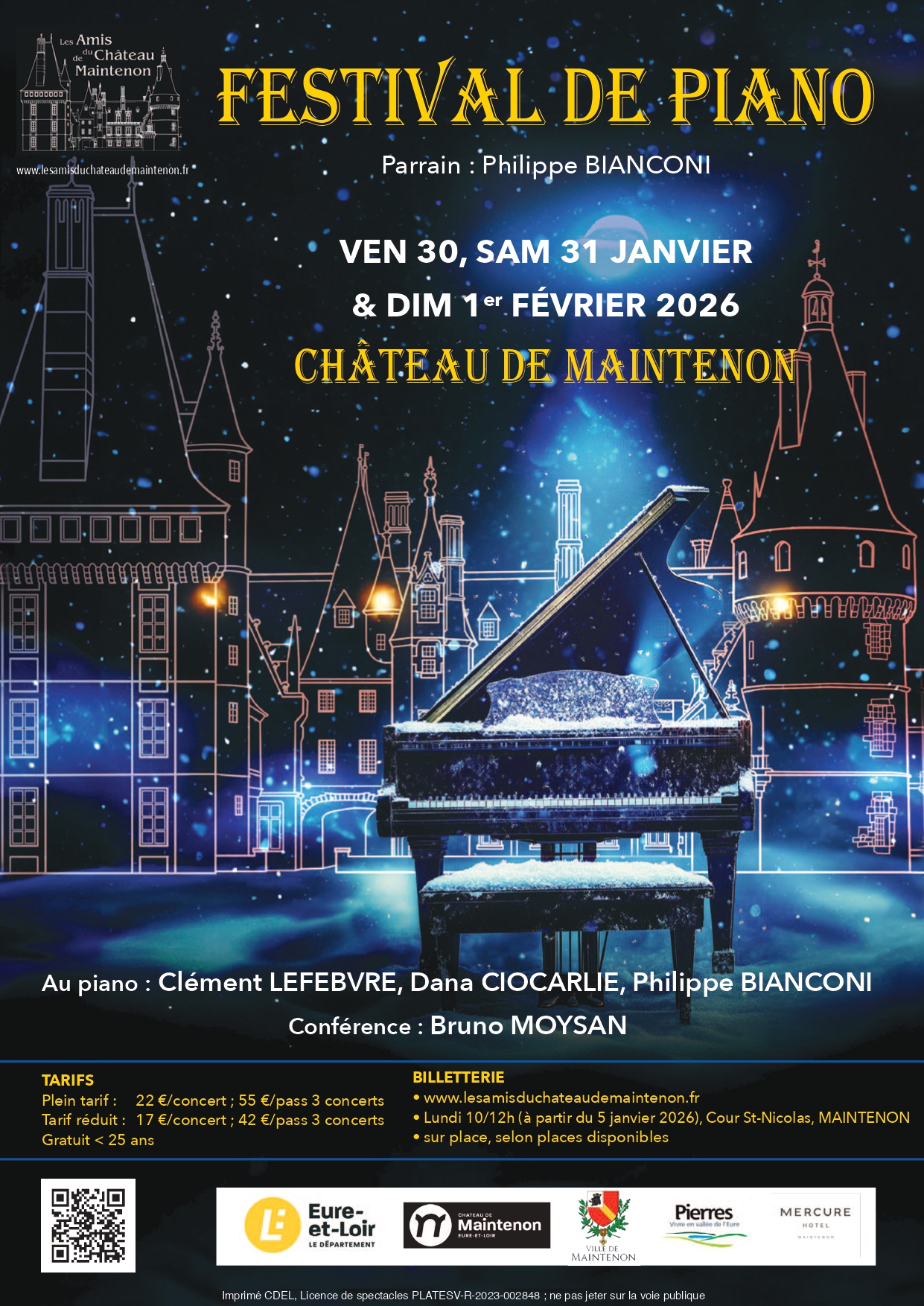 Les Amis du Château de Maintenon organisent leur tout premier Festival de piano, les vendredi 30, samedi 31 janvier et dimanche 1er février 2026.