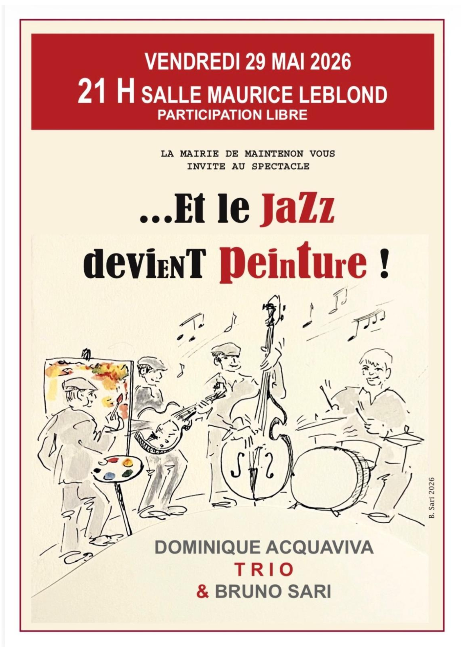 Informations Vendredi 29 mai 2026 Renseignements au 02 37 23 00 45 centreculturel@maintenon.fr |