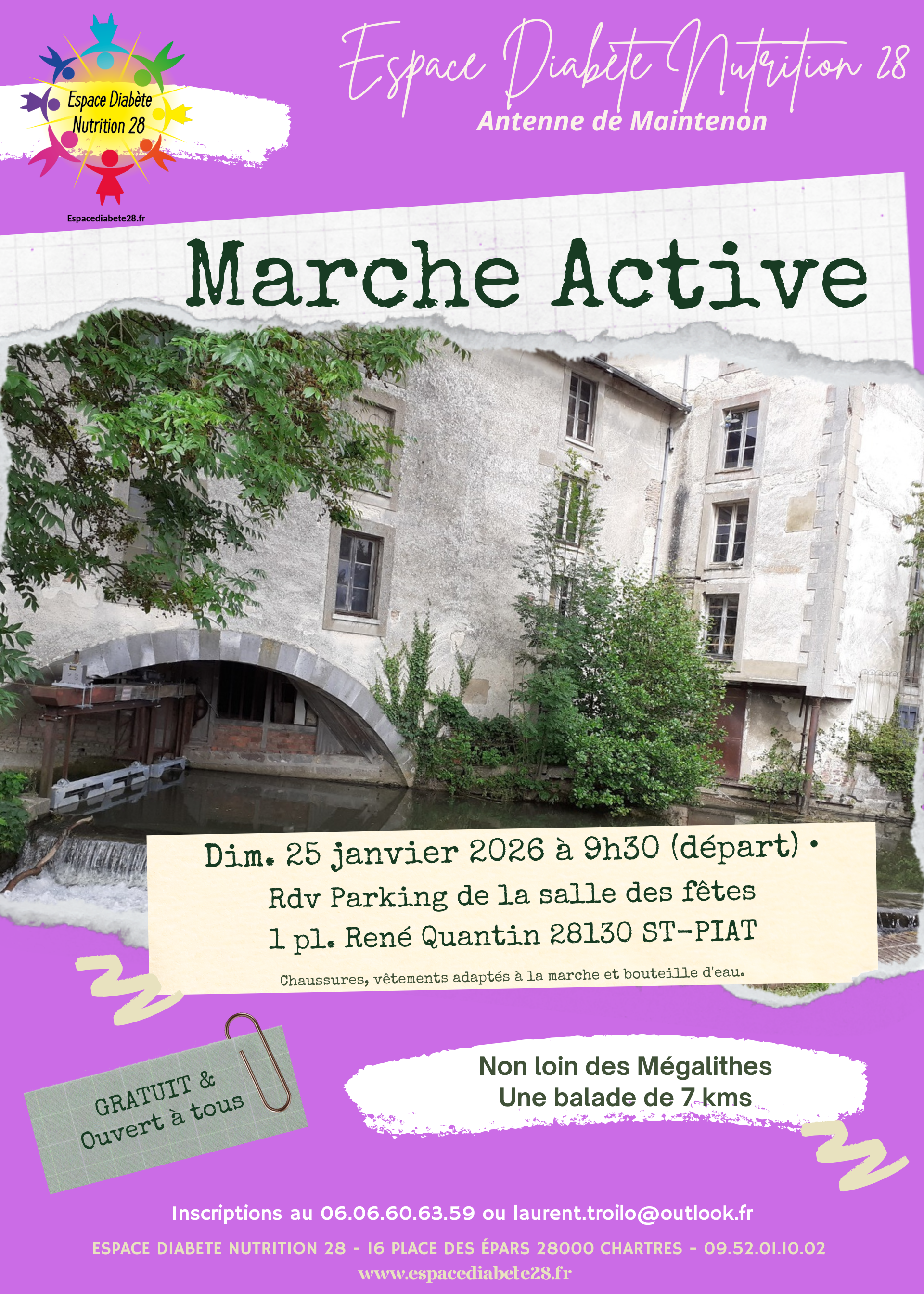 L’Espace Diabète vous invite à une marche conviviale de 7 kilomètres ""Non loin des mégalithes".