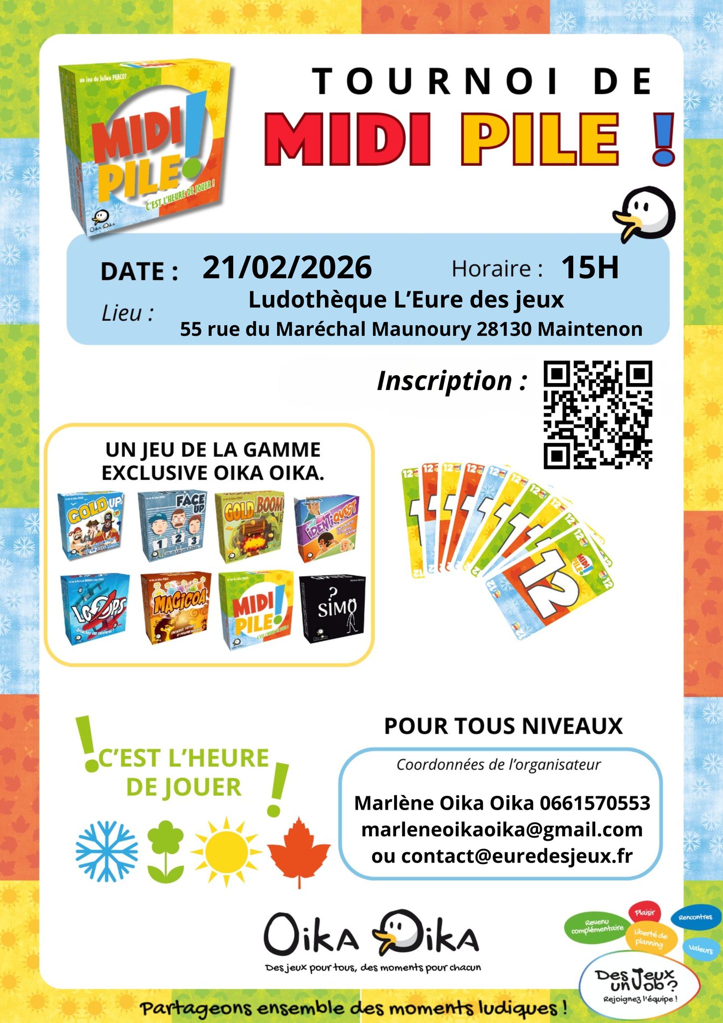 Amateurs de jeux, venez relever le défi lors d’un tournoi convivial et familial autour du jeu MIDI PILE !