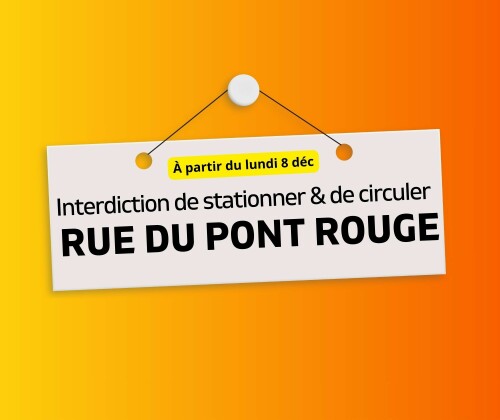 En raison de travaux au niveau de la rue du Pont Rouge, le stationnement et la circulation seront interdits dans cette rue, depuis l’avenue du Général de Gaulle jusqu’à son intersection avec la rue de Noailles, à compter du lundi 8 décembre et pour une durée de 30 jours, en fonction de l'avancement des travaux.