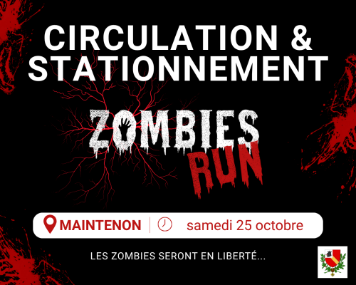 Les zombies s’apprêtent à envahir les rues de Maintenon le samedi 25 octobre ! Pour garantir la sécurité de tous, la circulation et le stationnement seront exceptionnellement modifiés lors de la manifestation.